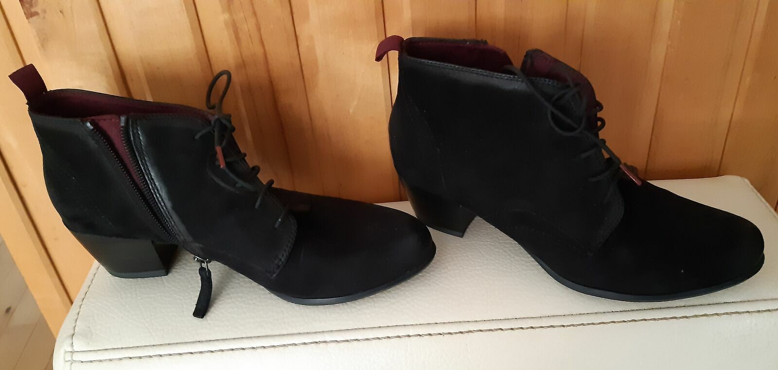 Skóra naturalna, czarne, obcas węższy dołem ,wysokość 5 cm, całkowita wys. buta razem z obcasem 13 cm.