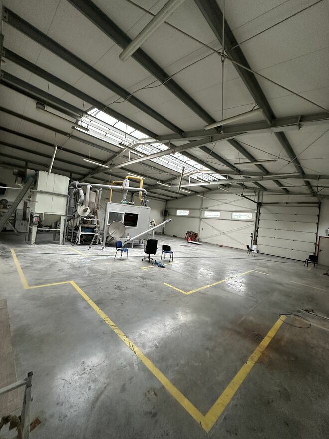 Ogrzewana i ocieplona HALA produkcyjna, z 2017 roku, zbudowanej z płyt warstwowych o powierzchni około 320 m2, wysokość 5,5m. Hala posiada bezpyłową posadzkę, prąd, pneumatykę, ogrzewanie, ciepłą wodę i wysoką bramę wjazdową, przewidzianą dla ciężarówek.