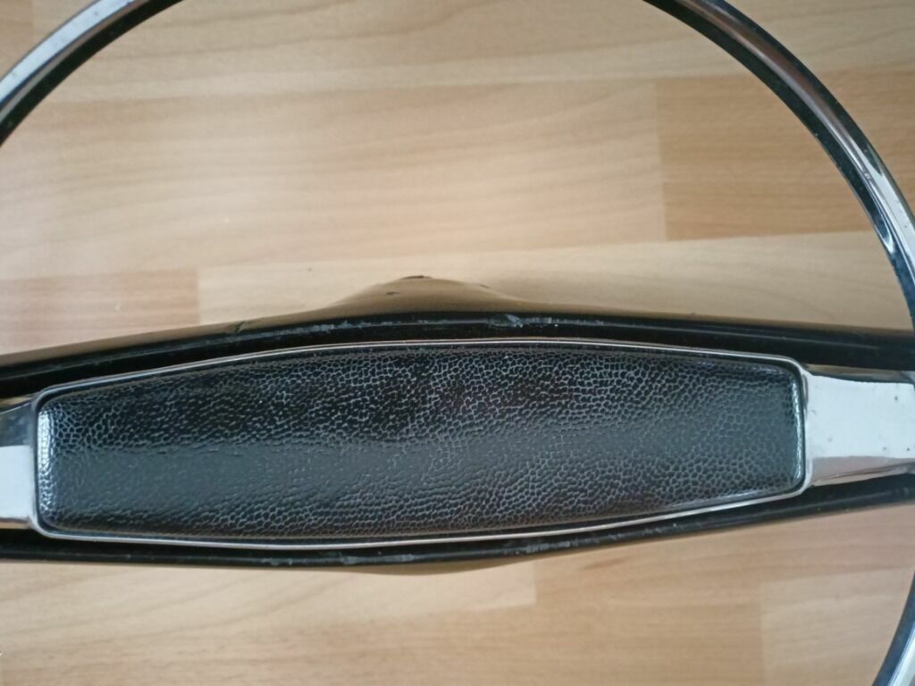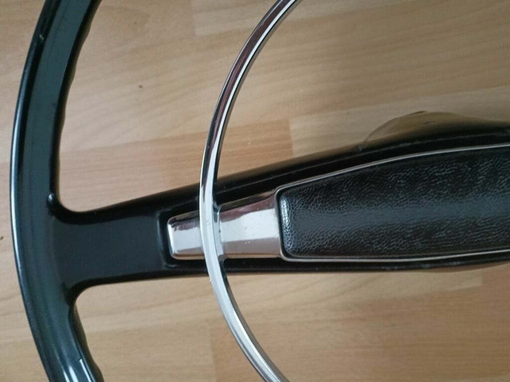 Kierownica do pierwszej serii Polskiego Fiata 125p z ringiem. Bardzo ładna, brak pęknięć na kole kierowniczym - jedynie na ramieniu, od strony montażowej są drobnę pęknięcia. Stan naprawdę ładny, połysk, czysta, zadbana, gdzie nie gdzie drobne ryski. Chrom ładny - ma połysk.Jakub