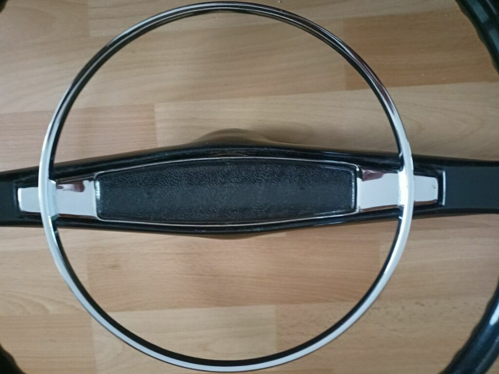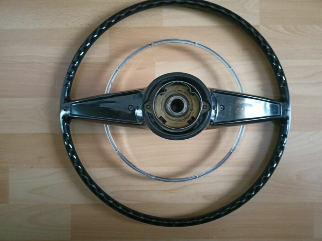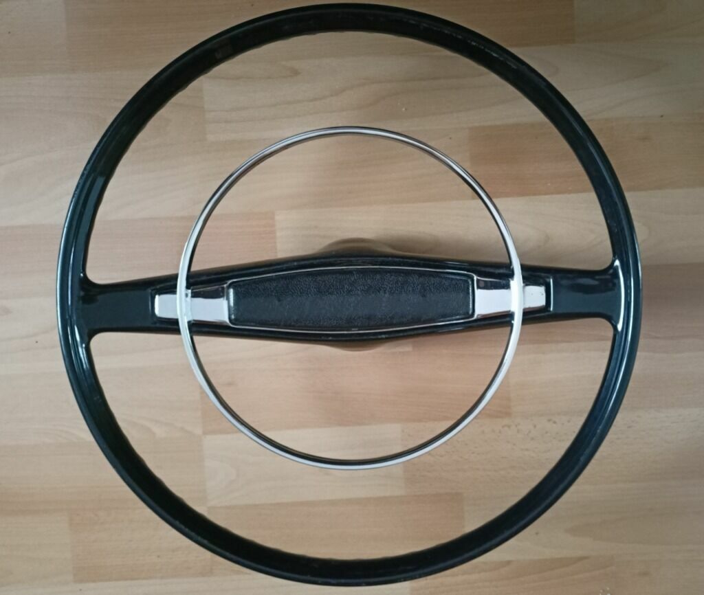Kierownica do pierwszej serii Polskiego Fiata 125p z ringiem. Bardzo ładna, nie jest popękana. Stan naprawdę ładny, połysk, czysta, zadbana, gdzie nie gdzie drobne ryski. Chrom ładny - ma połysk. Brak sprężyny pod przyciskiem klaksonu i w zaślepce brakuje jednego zaczepu, ale mimo to trzyma się mocno.Jakub