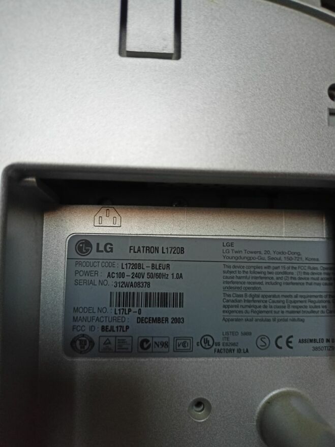 Używany, sprawny monitor LG Flatron L1720B.Stan wizualny jest taki jak na zdjęciach -normalne ślady użytkowania.