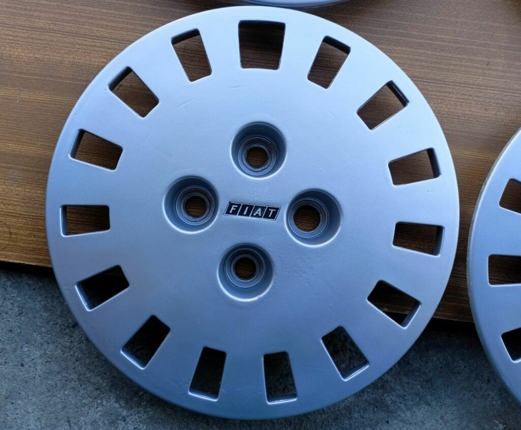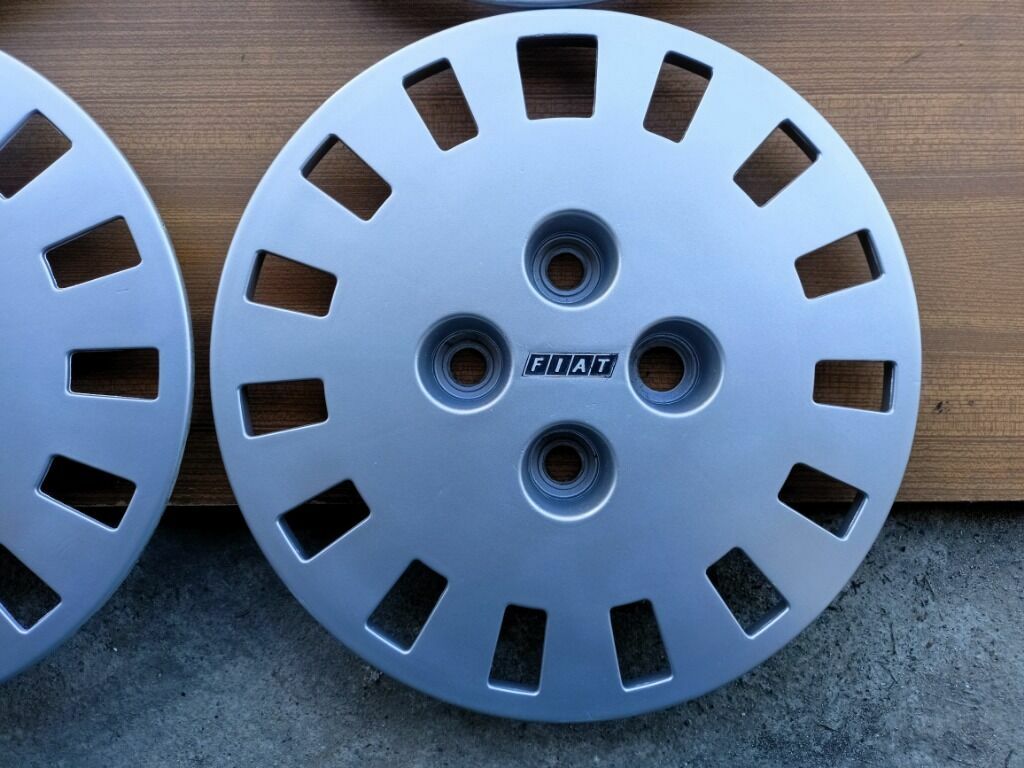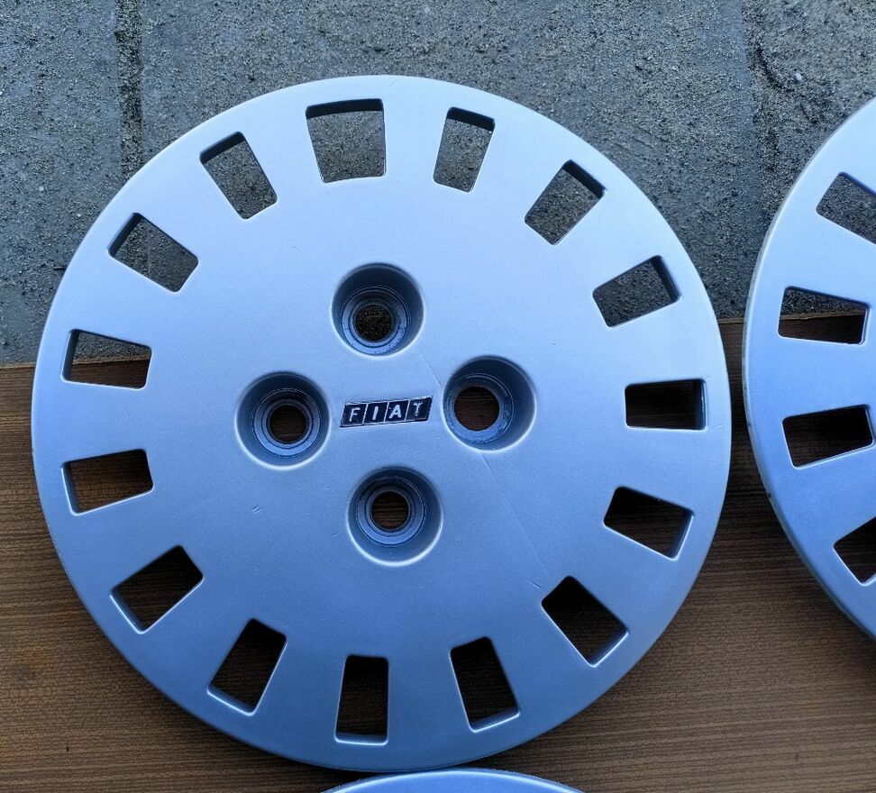 Komplet oryginalnych kołpaków do Fiata 126p Bis 13 cali - średnica 34cm. Kołpaki są w dobrym stanie - widoczny na zdjęciach, mają rysy, lecz są całe.Jakub