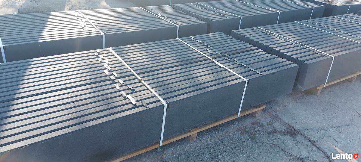 Podmurówki pełne gładkie obustronnie gładkie wibroprasowana kolor grafit o wys. 25x6x252 cm montowane na mocowania stalowe (ceowniki