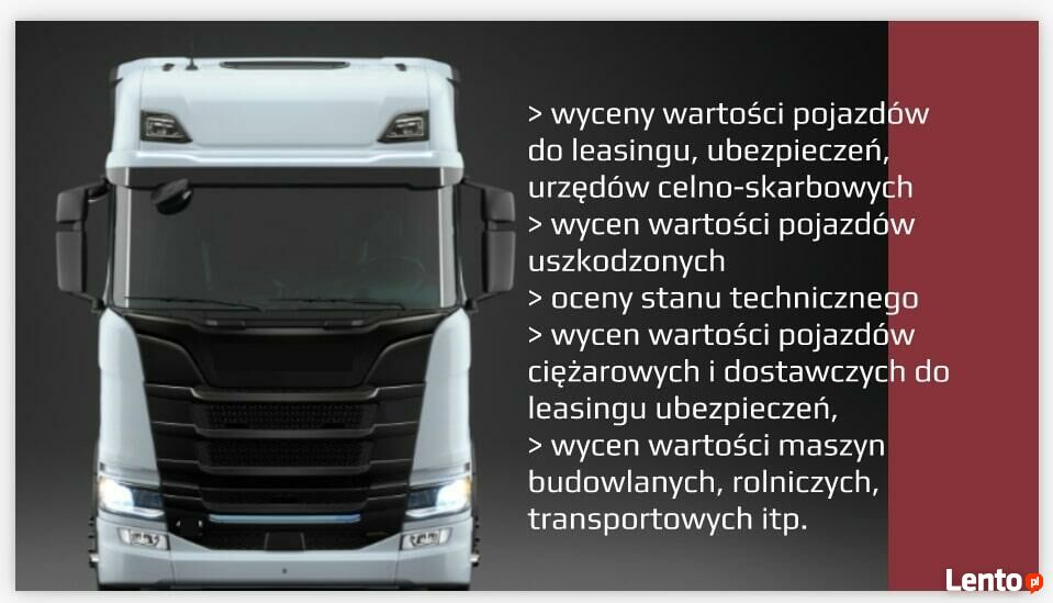 - Wyceny wartości pojazdów ciężarowych i dostawczych do leasingów, ubezpieczeń, urzędów celno-skarbowych itp.